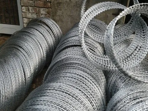 سلك أمني عالي الحماية مزود بشفرات حادة على شكل أمواس. يتميز بالقوة وردع محاولات التسلل.
